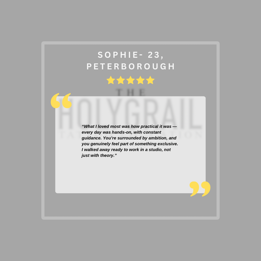Based in Peterborough, this intensive, practical training is designed for artists who want results, and for those who show true dedication, there’s the opportunity to earn a full-time spot at The HolyGrail Studios.