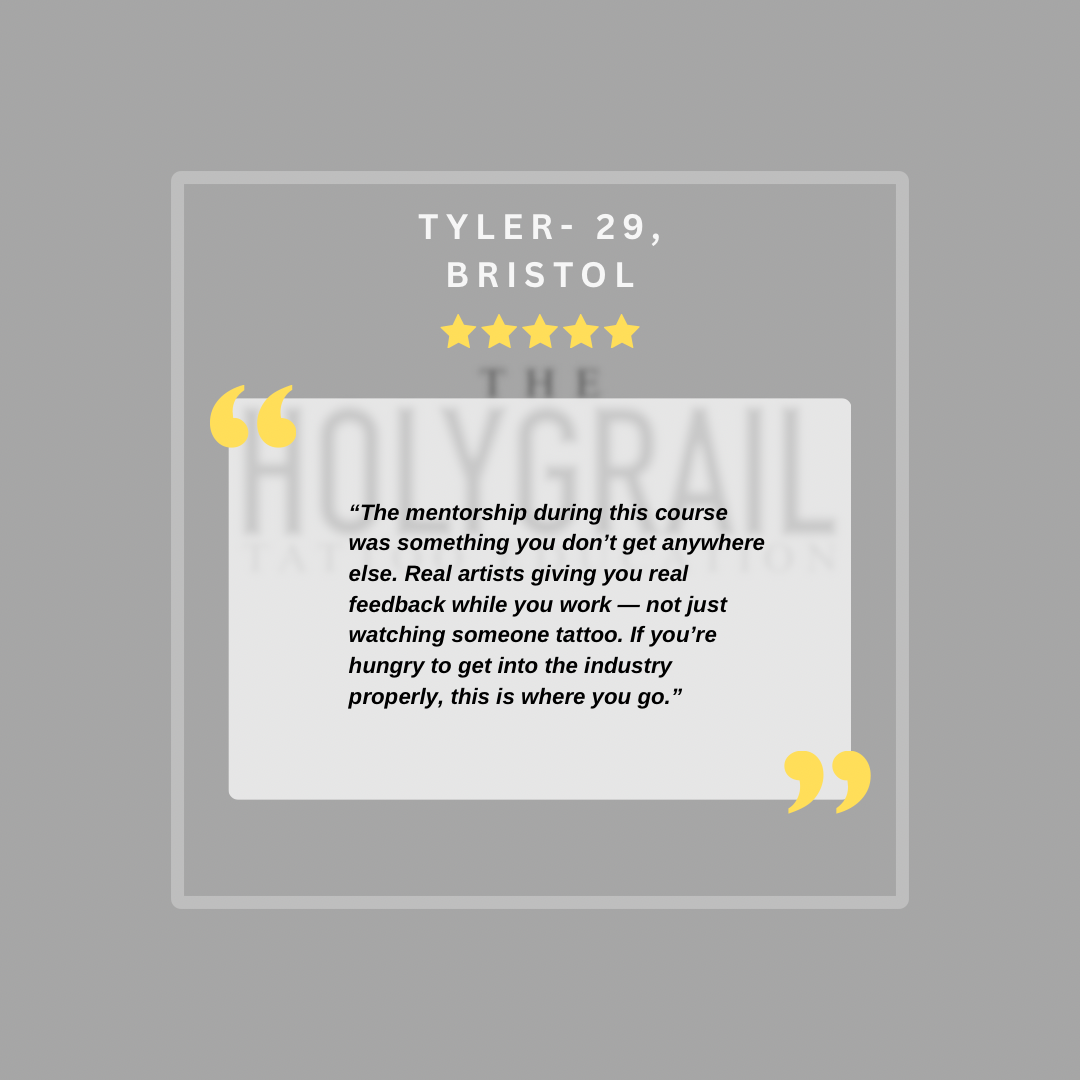 Discover why serious aspiring artists choose our program to elevate their craft. Our students don’t just learn, they transform. Through a structured, results-driven method, you’ll master the fundamentals of tattooing with clarity and confidence. Join a trusted network of future professionals and gain the skills that set you apart.